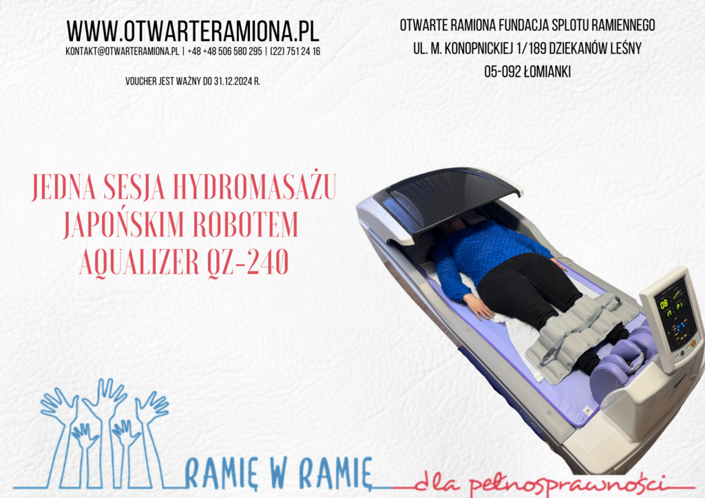 Nagrodą główną jest VOUCHER na masaż na nowoczesnej maszynie do hydromasażu na sucho, który można wykorzystać w siedzibie naszej Fundacji.