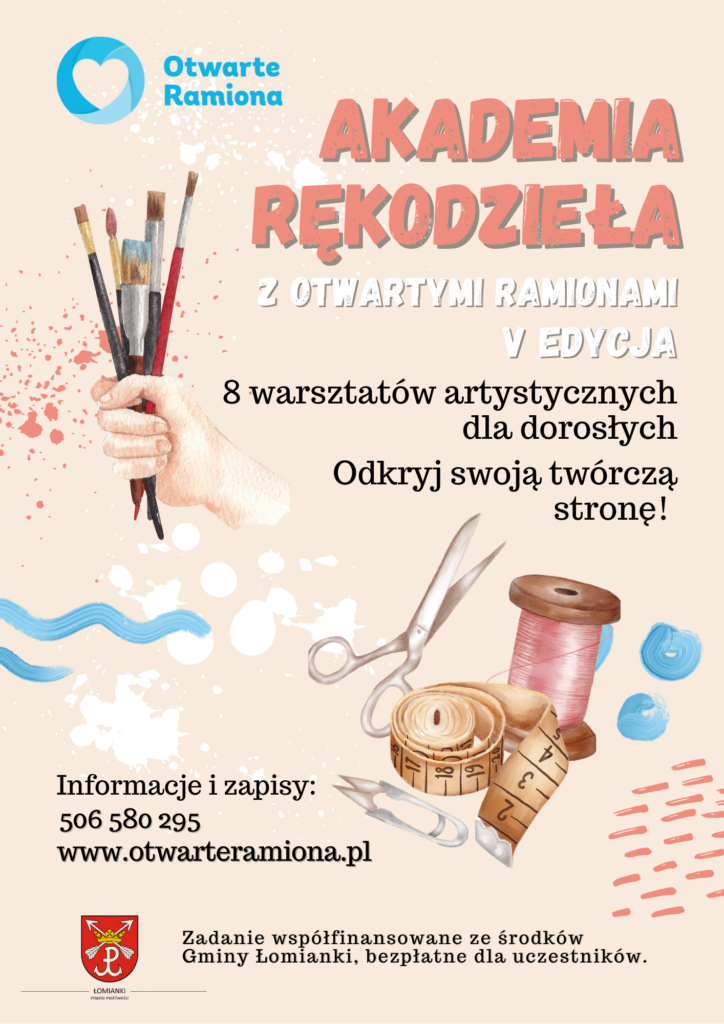 Fundacja Otwarte Ramiona od kilu lat realizuje cykl zajęć pod nazwą „Akademia Rękodzieła z Otwartymi Ramionami”. Jest to możliwe dzięki wsparciu z Gminy Łomianki oraz Waszemu niesłabnącemu zainteresowaniu tymi zajęciami! Dlatego z ogromną przyjemnością, ogłaszamy nabór do V Edycji Akademii Rękodzieła! Zapisujcie się już dziś, bo liczba miejsc jest ograniczona!