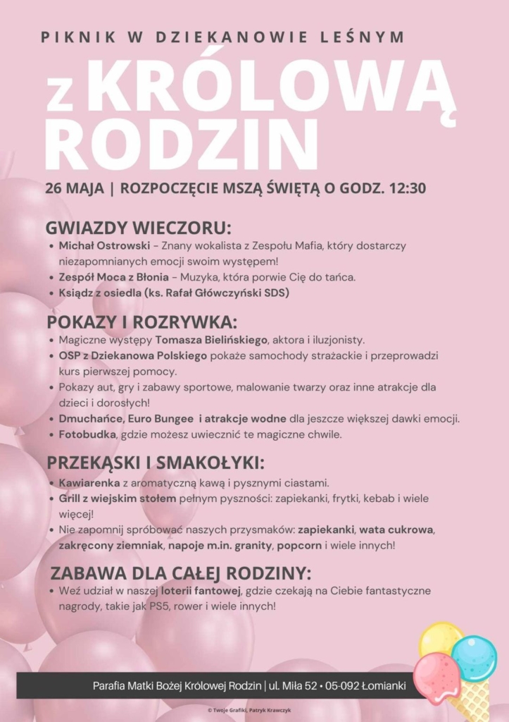 26 maja Parafia Matki Bożej Królowej Rodzin organizuje piknik rodzinny z okazji święta „Dnia Matki”. Na tym wydarzeniu nie zabraknie naszej Fundacji. W ramach mini projektu wolontariackiego „Wyzwalamy Emocje Artystyczne – warsztaty z rękodzieła”, nasi wolontariusze zaproszą uczestników pikniku do własnoręcznego robienia pięknych świec.
