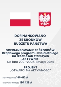 Projekt dofinansowany ze środków rządowego programu wieloletniego na rzecz Osób Starszych „Aktywni+” na lata 2021–2025”