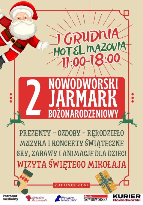 Mamy ogromną przyjemność gorąco zaprosić już w tę niedzielę, wszystkich naszych sympatyków do Hotelu Mazovia w Nowym Dworze Mazowieckim. Odbędzie się tam II Nowodworski Kiermasz Bożonarodzeniowy.