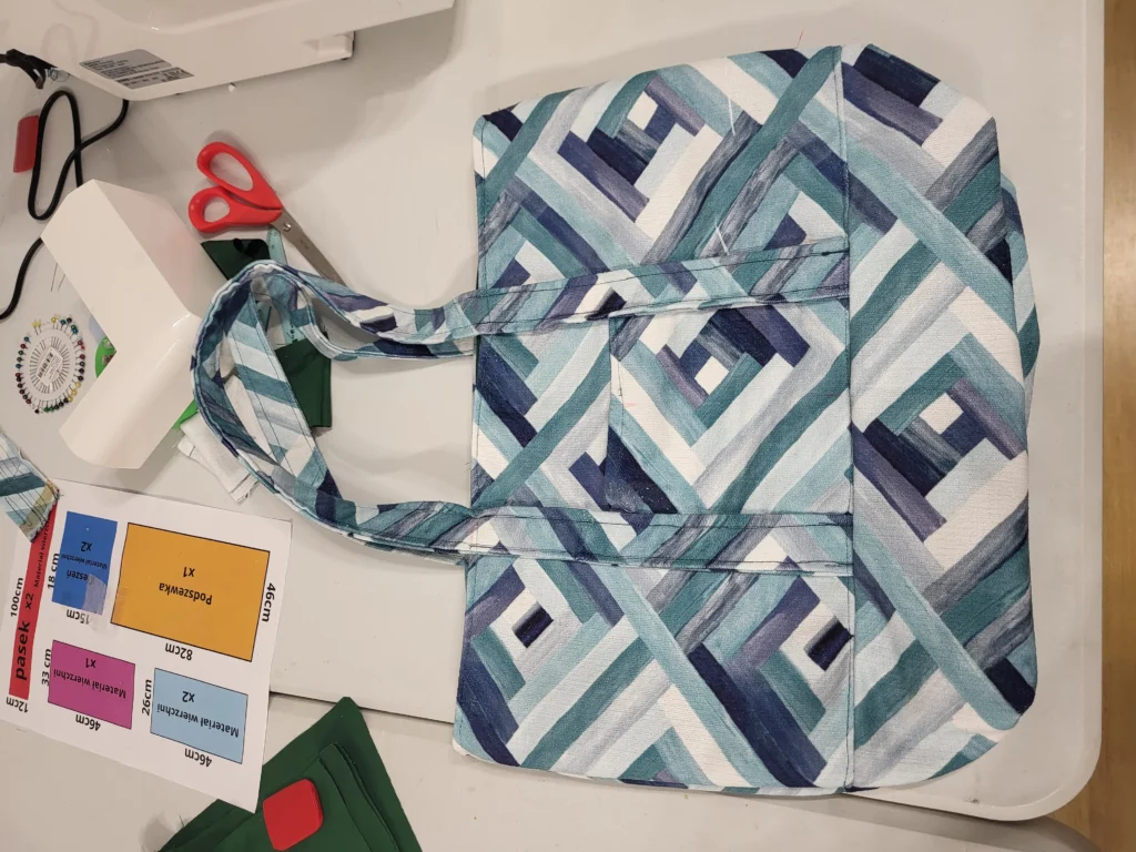- Szycie torby na zakupy – nauka podstaw obsługi maszyny do szycia.