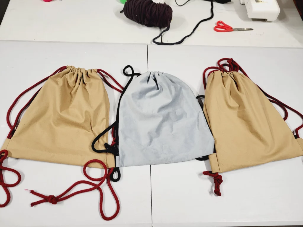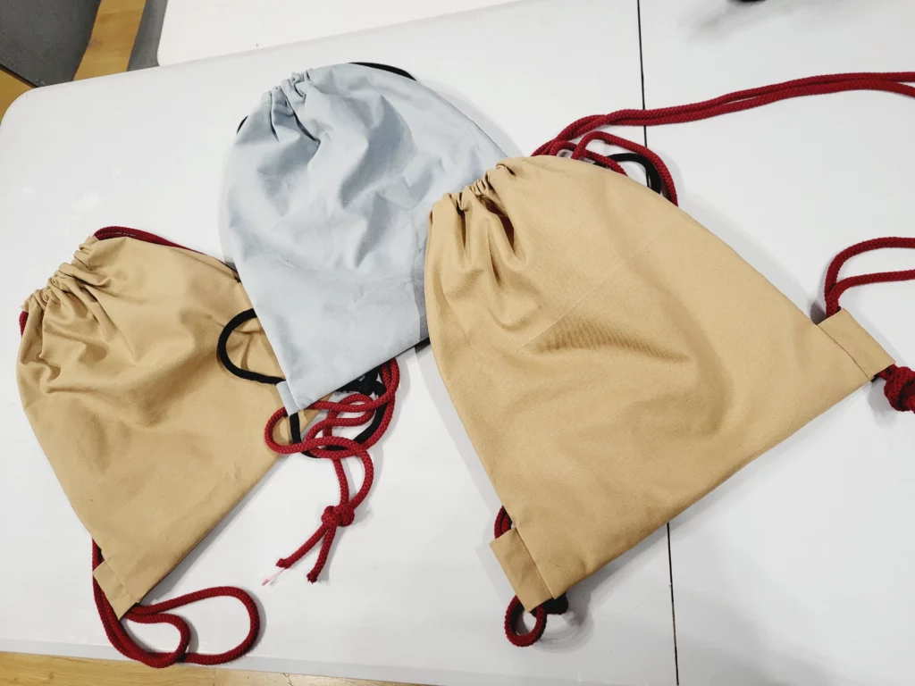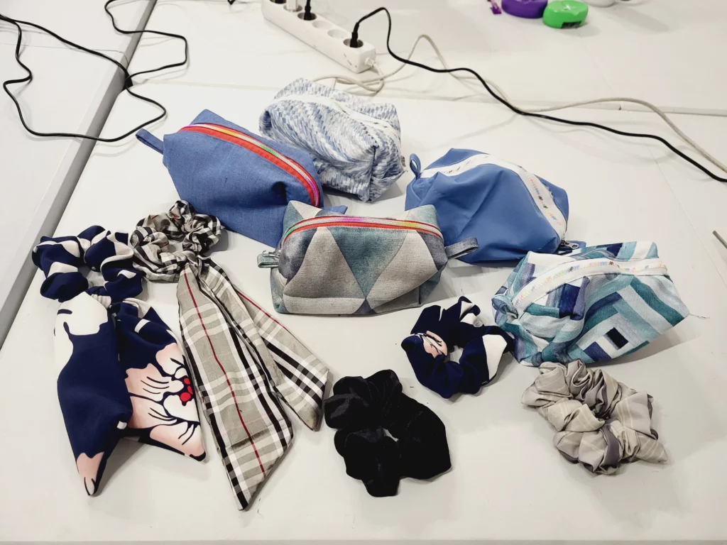 Podczas warsztatów uczestnicy nauczyli się nie tylko obsługi maszyny do szycia, ale również poznali podstawy projektowania, korzystania z wykrojów oraz wyboru odpowiednich materiałów i ściegów. Co więcej, promowaliśmy ideę wykorzystania materiałów z drugiego obiegu – stare ubrania, pościele czy zasłony zyskały nowe życie jako torby, workoplecaki czy spódnice.