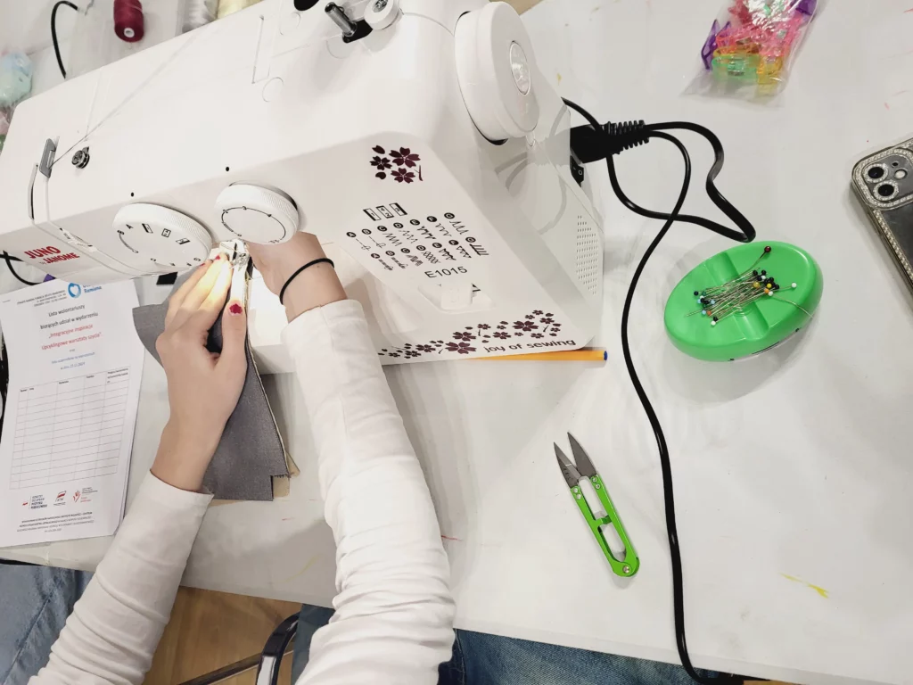 - Uczestnicy nauczyli się samodzielnego szycia i zdobyli podstawy krawieckiego rzemiosła.