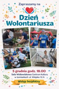 Podczas spotkania uhonorujemy naszych wolontariuszy, wręczając dyplomy i podziękowania za zaangażowanie, serce i czas, które ofiarujecie innym. Będzie to również doskonała okazja do wspólnego spotkania i integracji, rozmów o współpracy, podsumowania mijającego roku oraz omówienia planów na rok nadchodzący.