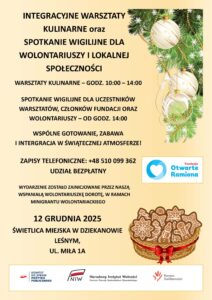 Zapraszamy na Integracyjne Warsztaty Kulinarne oraz Spotkanie Wigilijne – 12 grudnia 2025 r.
