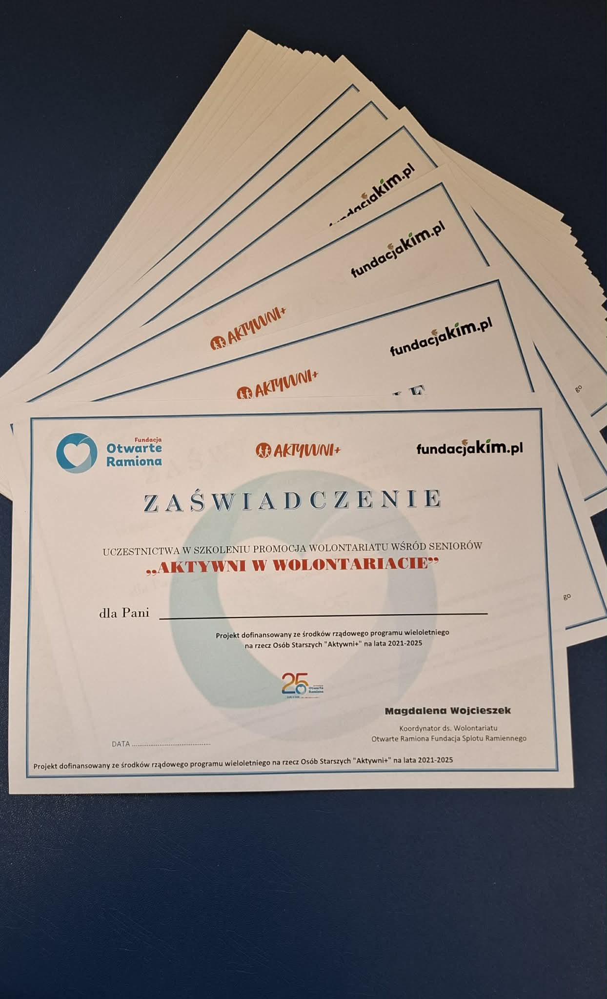 W okresie od lipca do grudnia 2025 roku zrealizowany został cykl bezpłatnych szkoleń „Aktywni w wolontariacie”, skierowany do seniorów w wieku 60+. Inicjatywa miała na celu promowanie aktywności wolontariackiej wśród osób starszych, zachęcanie ich do podejmowania działań społecznych dopasowanych do indywidualnych umiejętności, możliwości i dostępnego czasu, a także przybliżenie idei wolontariatu i jego różnych form.