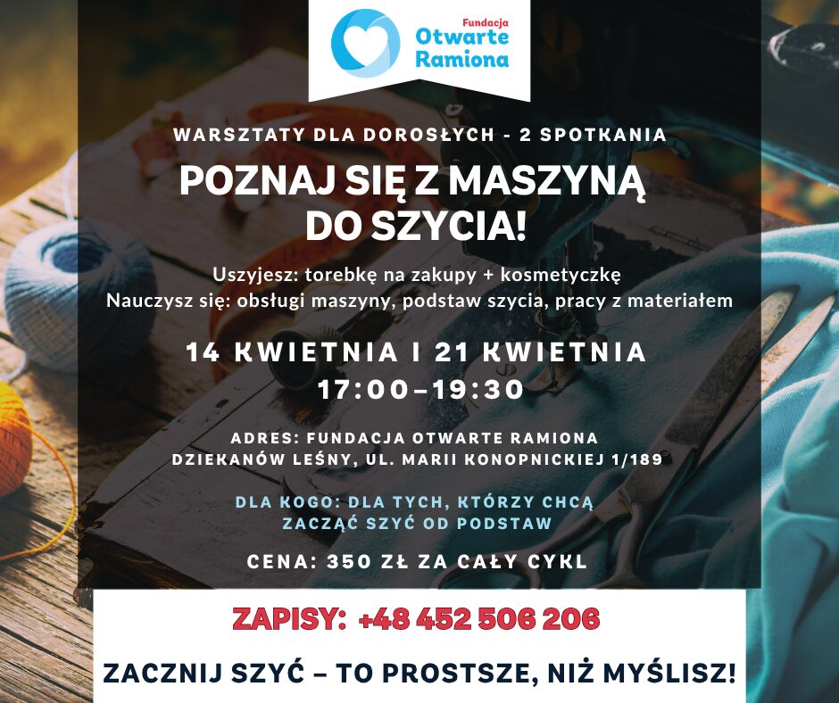 Fundacja Otwarte Ramiona zaprasza na praktyczny, dwuczęściowy warsztat szycia dla osób, które chcą rozpocząć swoją przygodę z maszyną do szycia od podstaw. To idealna propozycja zarówno dla tych, którzy nigdy nie szyli, jak i dla posiadaczy maszyn, którzy nie wiedzą, jak zacząć.