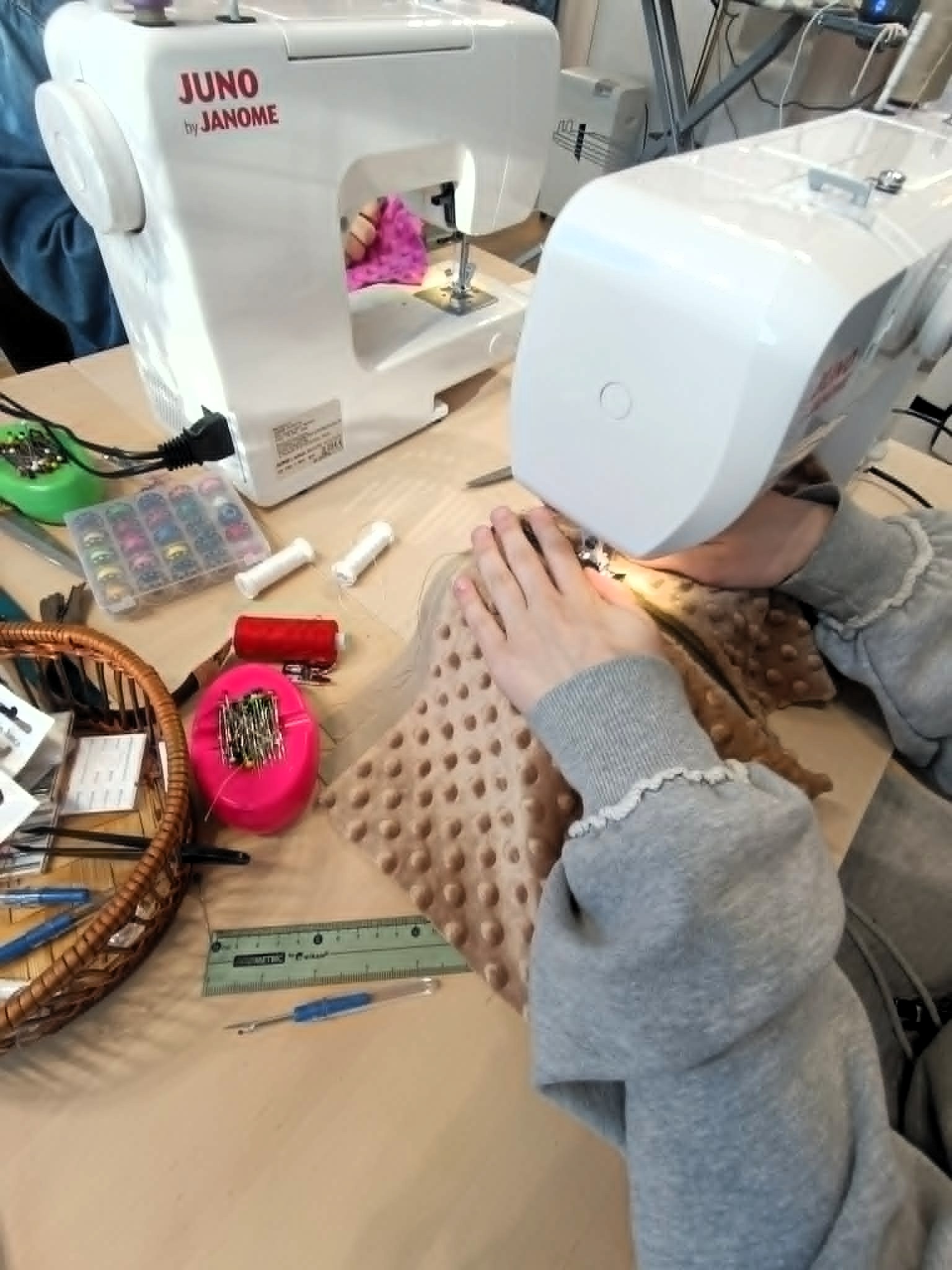 - nauczyły się nawlekania nici, wymiany igły i stopek,