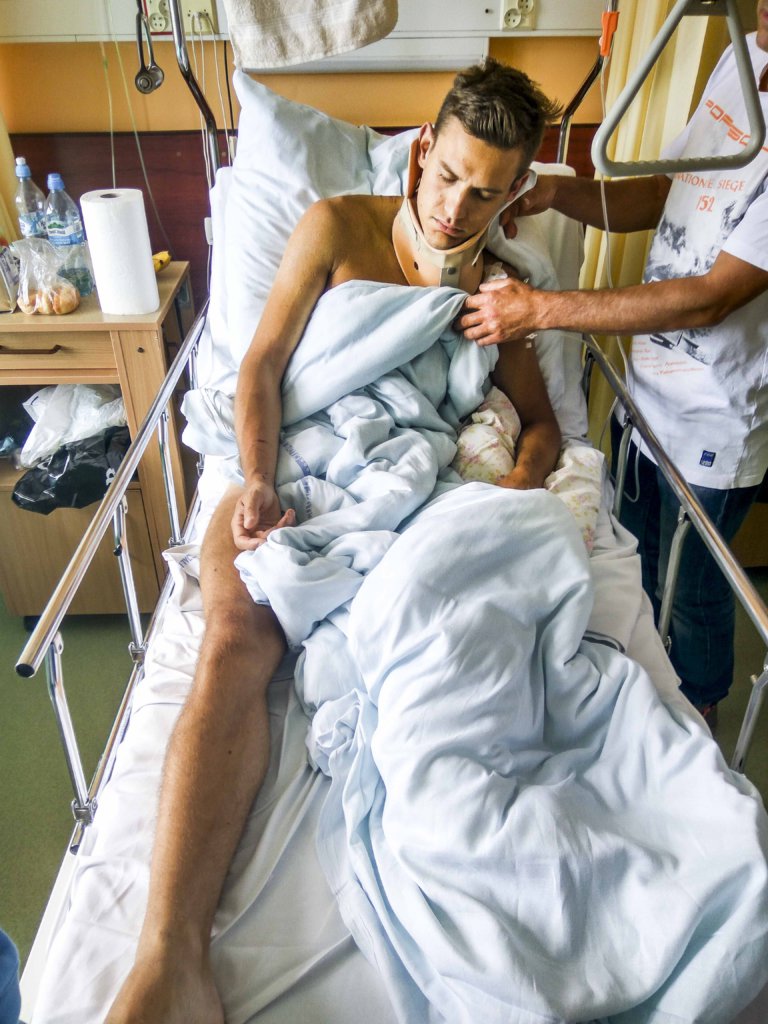 W stanie ciężkim z licznymi obrażeniami trafiłem najpierw na Oddział Intensywnej Terapii Medycznej i Anestezjologii, gdzie byłem wprowadzony w stan śpiączki farmakologicznej, po badaniach stwierdzono, że mam: