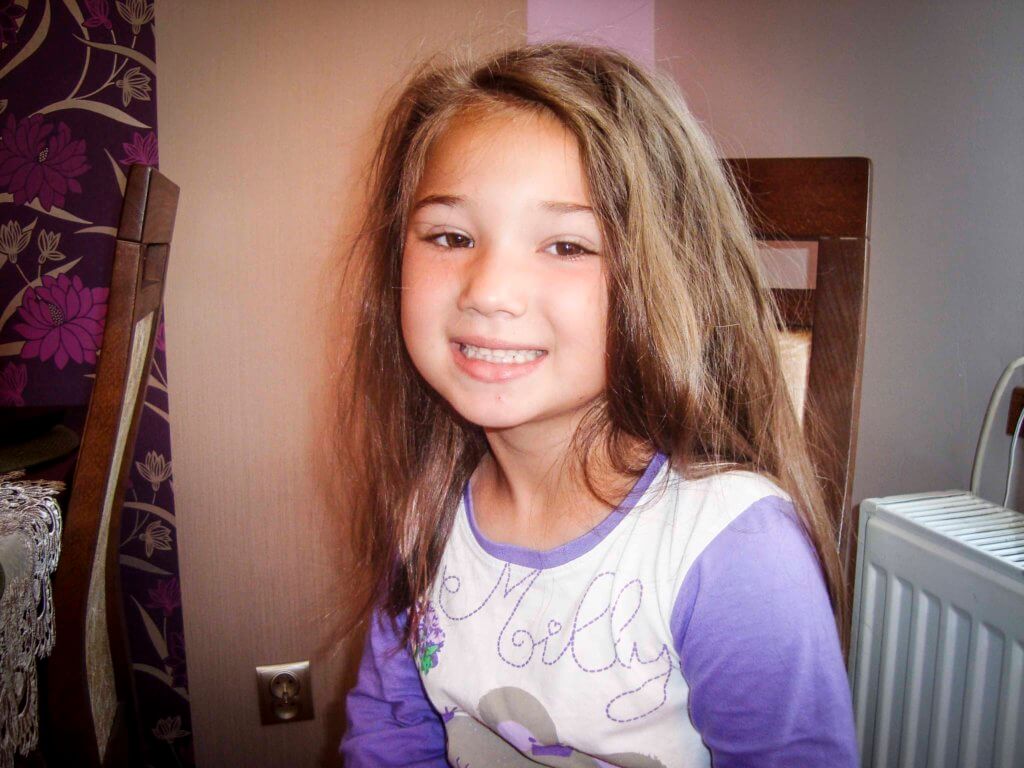 Jej prawa rączka nie jest w pełni sprawna, ale stara się i świetnie radzi sobie w codziennych czynnościach.