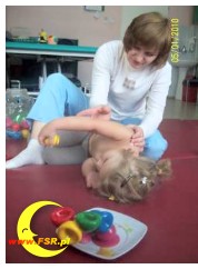 Obydwoje wołali o pomoc. W następnym momencie dwóch rosłych lekarzy naciskało na mój brzuch, dwie inne położne trzymały mnie za nogi, w tym czasie położna trzymała cały czas głowę dziecka, a trzeci lekarz wydobywał córeczkę. W pogotowiu stały dwie panie z Neonatologii. Po wszystkim na ułamek sekundy położono mi moją córeczkę na brzuch. Nie płakała. Była calusieńka sina. Wyciągnęłam do niej rękę by ją pogłaskać i w tym momencie zabrano mi ją. Wiktoria urodziła się w zamartwicy z licznymi wybroczynami obrzękami główki. Miała krwiaki podokostnowe, wymagające dwukrotnej interwencji chirurgicznej. W skutek wyszarpania na świat, złamano jej obojczyk i uszkodzono nerwy prawej rączki doprowadzając do porażenia splotu barkowego. Jej rączka była zimna i wiotka. Leżała bezwładnie wzdłuż obolałego ciałka. Nasz pobyt na oddziale trwał 11 dni. Po wyjściu pojechałyśmy na konsultacje do Szpitala w Konstancinie. Tam pani mgr. Maria Grodner udzieliła mi pierwszych instruktarzy. Pokazała jak wykonywać rotacje, ćwiczenia bierne a także jak masować i ogrzewać rączkę Od tej pory rozpoczęta została intensywna rehabilitacja w domu przekładana wyjazdami na turnusy w Dziekanowie Leśnym, CZD w Międzylesiu, i w Konstancinie – Jeziorna. Rehabilitacja Wiktorii trwa do dziś i niestety będzie nieodłącznym elementem jej życia.