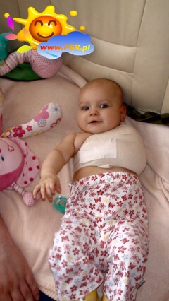Nasza córka Dominika jest już po operacji, która odbyła się 6 maja 2010 r. w klinice w Aachen, którą przeprowadził wybitny specjalista w dziedzinie chirurgii splotu doktor Jórg Bahm. 4.06.2010r. przybyliśmy do kliniki, następnego dnia odbyła się konsultacja i zostaliśmy przyjęci na oddział. Kolejny dzień to operacja, która trwała ponad 8 godzin (były to najdłuższe godziny w naszym życiu!). Po zakończonej operacji nasza córeczka została przewieziona na OIOM, gdzie spędziła dobę. Ze szpitala zostaliśmy wypisani po tygodniu od operacji.