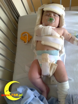 I wtedy się zaczęło. Nikola mając prawie trzy tygodnie zaczęła rehabilitację na początku w domu, powoli można było, zauważyć że rączka zaczyna sie podnosić, byliśmy wszyscy bardzo szczęśliwi widząc jak podnosi, już myśleliśmy że to pierwsze kroki do ruszania rączka, ale niestety tak nie było. Nikolcia podnosiła i do tej pory tak podnosi rączkę nie zginając w łokciu nie ruszając nadgarstkiem. Po trzech miesiącach pojechaliśmy na turnus rehabilitacyjny do Dziekanowa Leśnego tam po dwóch tygodniach rehabilitacji podnosiła troszkę wyżej ale nadal bez zmian. W trakcie turnusu rehabilitacyjnego zapisaliśmy Nikolcie do Fundacji Otwarte Ramiona, która jest organizacją pożytku publicznego o nr KRS 0000142952 przyjazna bardzo dla naszych małych pociech, wiedzieliśmy że będzie potrzebna nam pomoc właśnie takiej fundacji która znajduje się w Dziekanowie Leśnym – Łomianki, i o której dowiedzieliśmy się od znajomych. W tej fundacji otrzymujemy bardzo duże wsparcie, a to dzięki ludziom którzy mają, odrobinę serca dla naszej Nikoli. Po turnusie była konsultacja lekarska z dr. Gilbertem z Francji i okazało się, że musi być operowana. Bez operacji ciężko będzie na jakąkolwiek poprawę, ponieważ ma zerwane nerwy. No cóż bez jakiegokolwiek zastanawiania zdecydowaliśmy się od razu ją wysłać na operacje do Francji, która jest bardzo kosztowna. A po operacji czekają ją lata rehabilitacji.