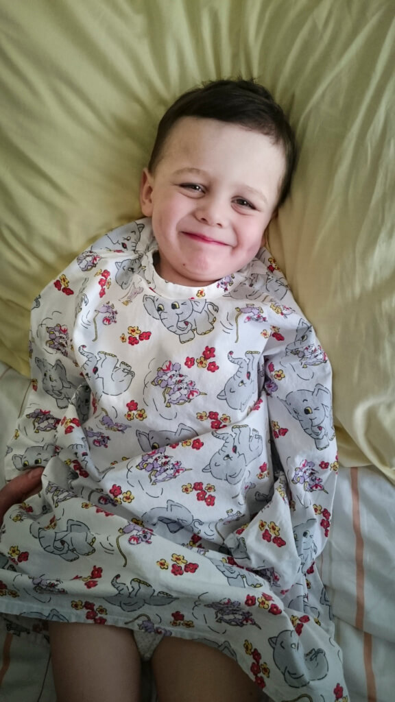 Lekarz, który go operował poinformował nas, że za kilka dni będzie kolejna operacja, żeby sprawdzić czy mięsień się przyjął, jeśli nie trzeba będzie go usunąć. Pierwsze słowa Rysia po przebudzeniu to “ chcę herbatę miętową z cukrem “.