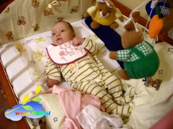 W drugim m-cu życia pojawiły się pierwsze postępy w rehabilitacji Oli. Najpierw zaczęła lekko unosić wyprostowaną i przytuloną do ciała rączkę. Następnie pojawiło się delikatne odwodzenie. W czwartym miesiącu Ola zaczęła zginać rączkę w łokciu i diagnozy specjalistów stały się bardziej optymistyczne. Na dzień dzisiejszy (X m-c) Ola potrafi rączką unosić zabawki, wkłada rączkę do buzi, raczkuje. Wciąż jednak brakuje wielu ruchów i występuje charakterystyczna dla porażonych splotów rotacja zewnętrzna (coraz mniejsza). Nie wiemy jeszcze czy Oleńka będzie musiała poddać się operacji. Rozstrzygnąć się to musi w najbliższych tygodniach. Dzięki temu, że Oleńka jest niesamowicie radosnym i ruchliwym dzieciaczkiem, znosi wszystkie niedogodności swojego noworodkowo-niemowlęcego okresu życia z uśmiechem (oprócz ćwiczeń Vojty, których nie znosi żadne dziecko).