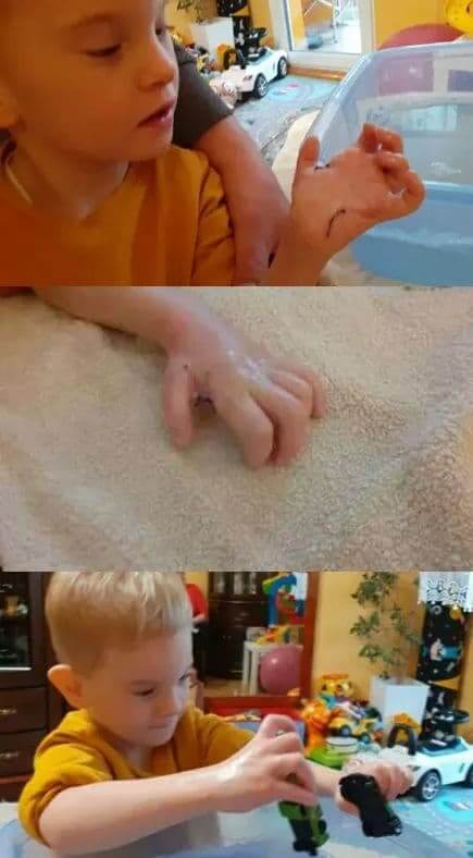 Poznajcie tego dzielnego wojownika? To Szymek, który jest już miesiąc po operacji i zdjęciu opatrunku. Jak widzicie chłopak dzielnie ćwiczy i walczy o sprawność rączki! A to wszystko jest możliwe dzięki waszemu ogromnemu wsparciu i środkom, które udało się zebrać podczas zbiórki. Warto otworzyć się na pomaganie, bo to procentuje!