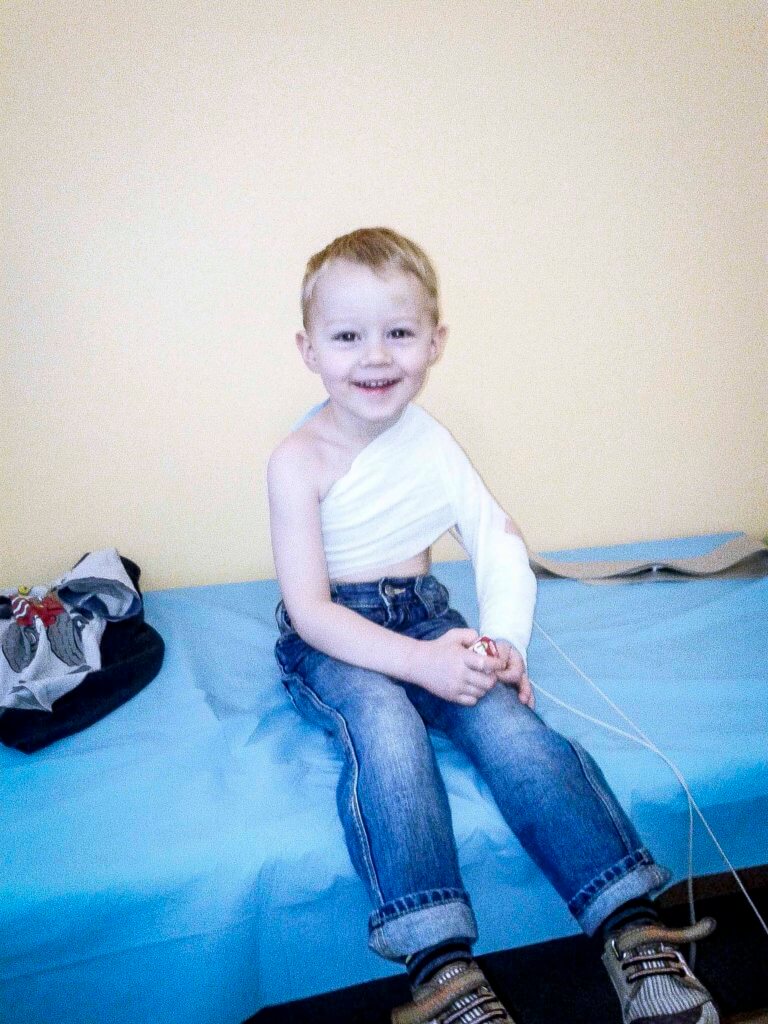 Szymon ma krótszą rączkę i cały czas utrzymuje się przykurcz w łokciu.