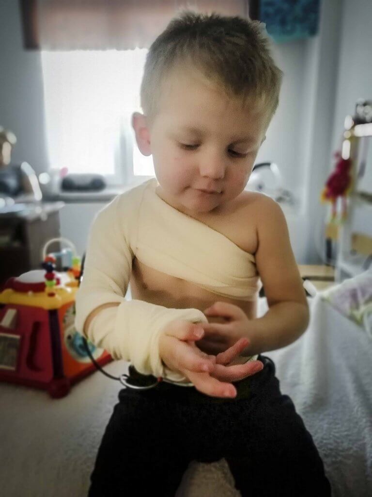 W Fundacji Otwarte Ramiona dowiedziałam się o możliwości rehabilitowania dziecka na Oddziale Rehabilitacyjnym w Szpitalu w Dziekanowie Leśnym. Wiadomości o zakwalifikowaniu się na turnus towarzyszyły radość i smutek. Musiałam zostawić na 3 tygodnie w domu 5 letnią córkę, która szła do szkoły (zerówki) i bardzo przeżyła to, że mama musi jechać z jej wymarzonym braciszkiem naprawić chorą rączkę.