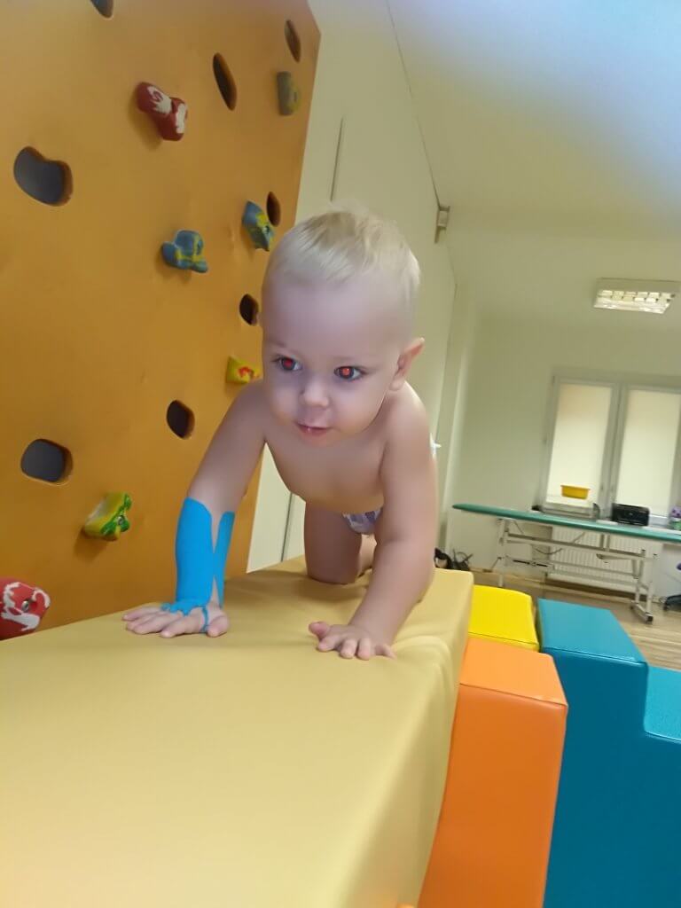 Od pierwszych dni w szpitalu synek był rehabilitowany metodą Vojty. Następne Vojta i Bobath. W tej chwili Mikołaj ma rehabilitację metodą bobath, zajęcia na basenie, dużo rehabilitacji za pomocą zabawy. Codzienna Rehabilitacja przynosi efekty. Synek coraz częściej używa rączki do zabawy lub chociaż jak mu pomoc. Trzeba mu przypominać o tym, aby używał prawej raczki.