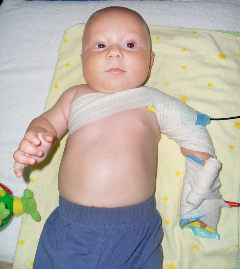Przed porodem nie wykonano usg, a szkoda ponieważ tak duża masa i wielkość uświadomiłaby, być może, lekarzowi i położnej konieczność zastosowania porodu poprzez cesarskie cięcie. Tak się nie stało, dlatego nasz syn urodził się z porażeniem splotu barkowego lewej ręki. Dodatkowo nikt po porodzie nie zainteresował się tym aby poinformować nas rodziców co to jest porażenie splotu barkowego, gdzie można uzyskać pomoc, jak się to leczy. Jedynie przekazano żonie informację iż podczas karmienia, kąpieli i wszystkich zabiegów pielęgnacyjnych nie dotykać „chorej” rączki i najlepiej obchodzić się z nią jak z jajkiem. Wszystkich informacji o porażeniu splotu barkowego dowiadywaliśmy się z informacji zamieszczonych w internecie oraz na stronie Fundacji Otwarte Ramiona.