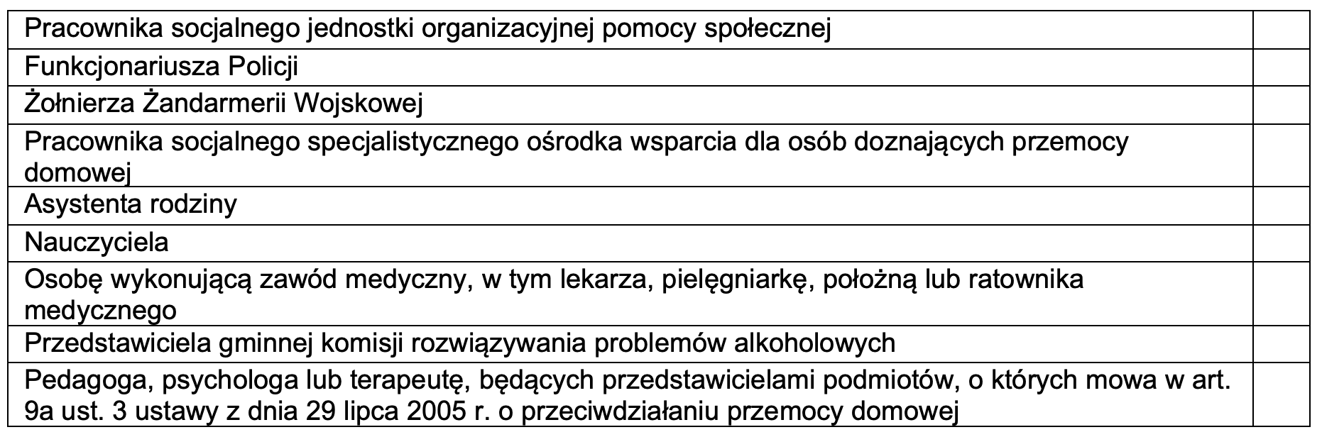 W związku z powzięciem uzasadnionego podejrzenia stosowania przemocy domowej lub w wyniku zgłoszenia przez świadka przemocy domowej ustala się, co następuje: